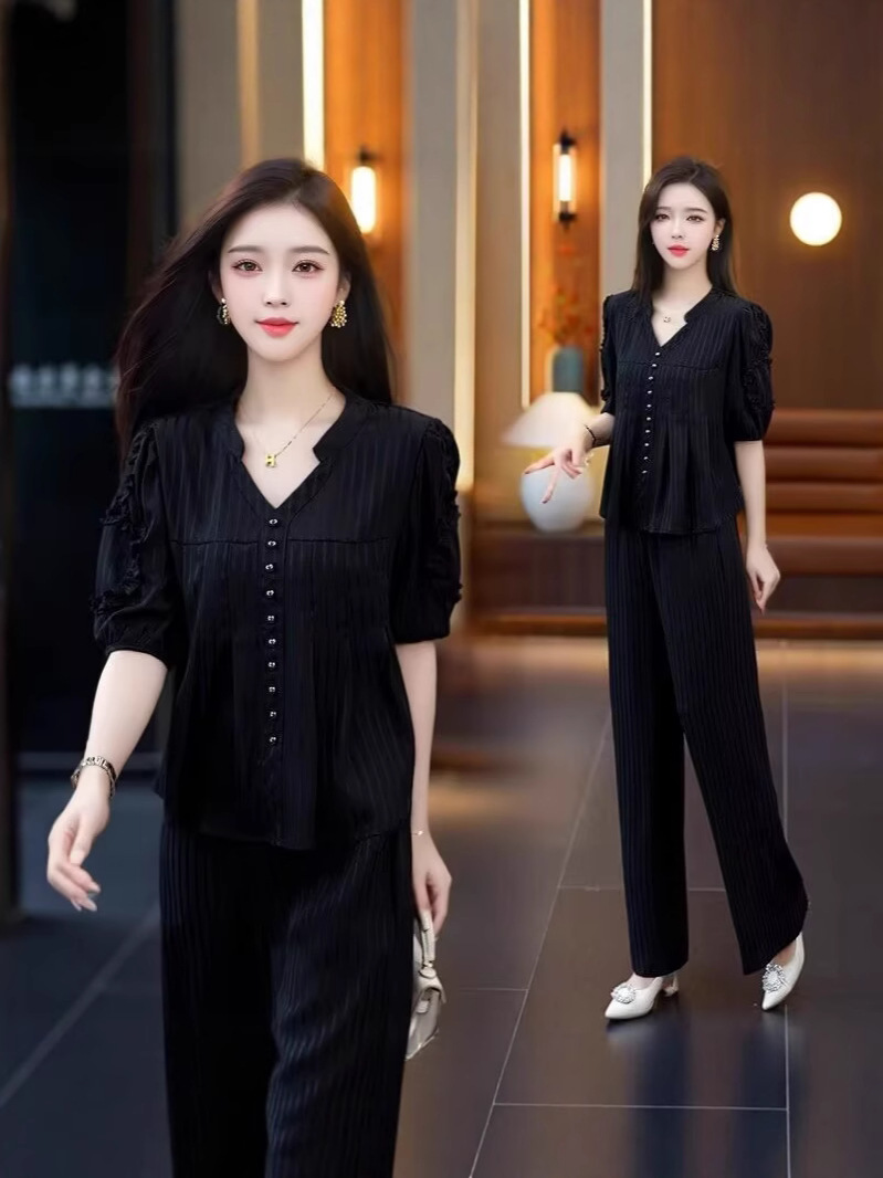 高級感冰絲時尚套裝女夏季新款氣質穿搭一整套薄款洋氣休閒兩件套