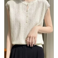 法式無袖花邊百搭針織衫 溫柔系必備 法式無袖花邊針織衫 輕盈百搭 甜美與優雅並存 輕鬆穿出慵懶高級感