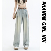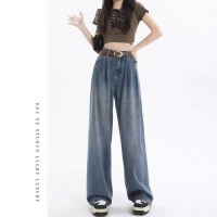 爆款美式褶皺寬鬆垂感直筒褲子 冰絲軟牛仔神褲 修身顯腿長 高級感滿滿 2025新款高腰寬鬆褶皺垂感拖地直筒褲