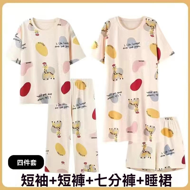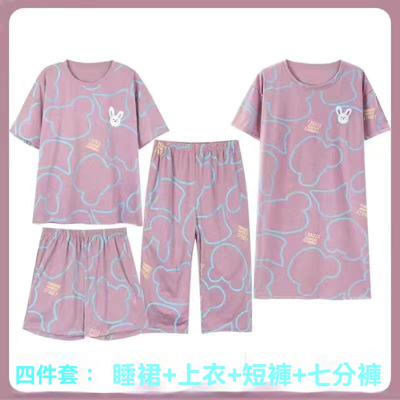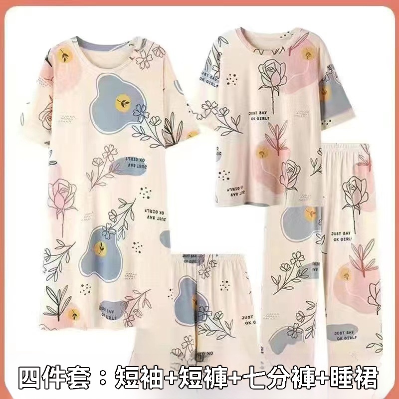 【睡衣四件套】短袖+睡衣+長褲+短褲,柔軟舒,透氣親,不起球不掉色,遮肉顯瘦還修身,比裸睡還舒服,耐穿不易變形