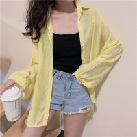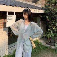 新款夏季設計外穿感洋氣長袖上衣,純色寬鬆,防曬百搭,雪紡襯衣外套女薄款