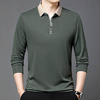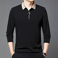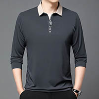 2025新款男士商务休闲翻领長袖POLO衫--成熟男士必備!長袖休閒純色Polo衫,時尚翻領T恤,帥氣有型,盡顯男士魅力!