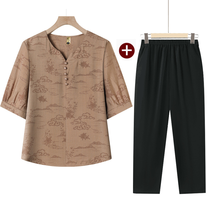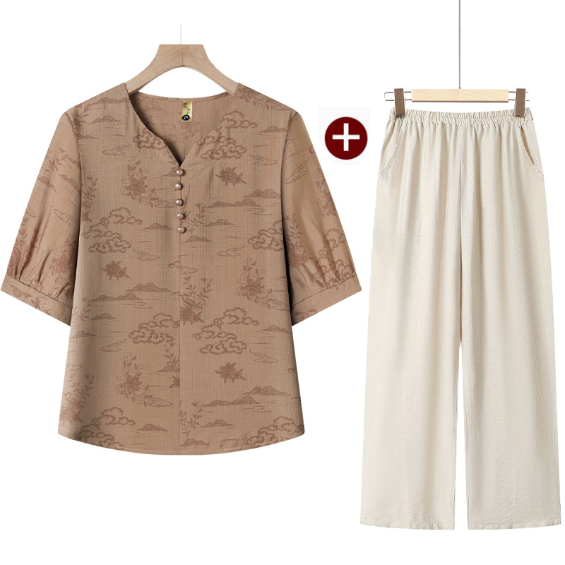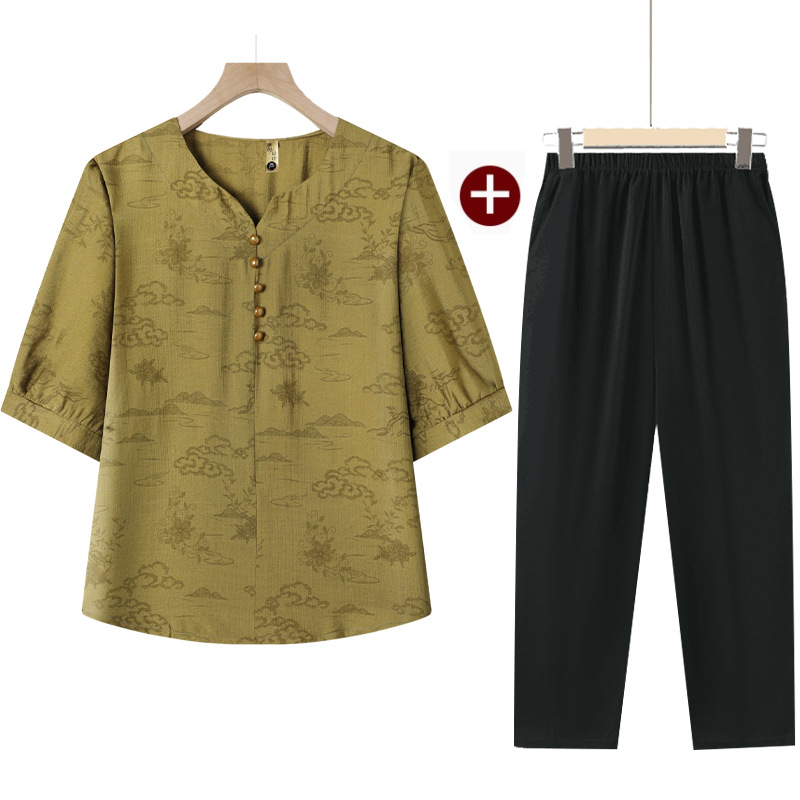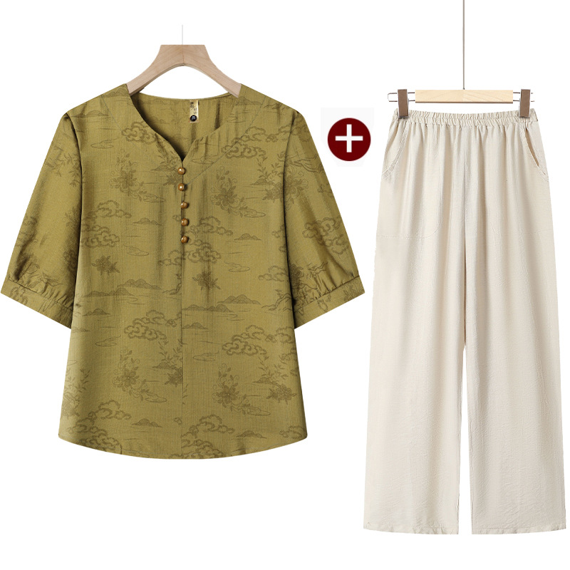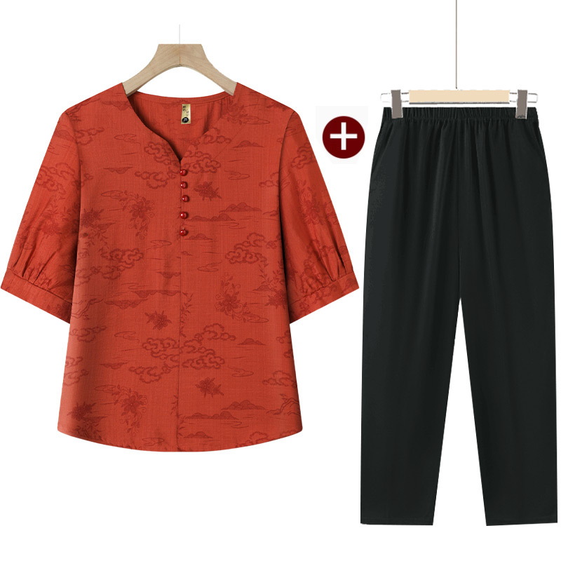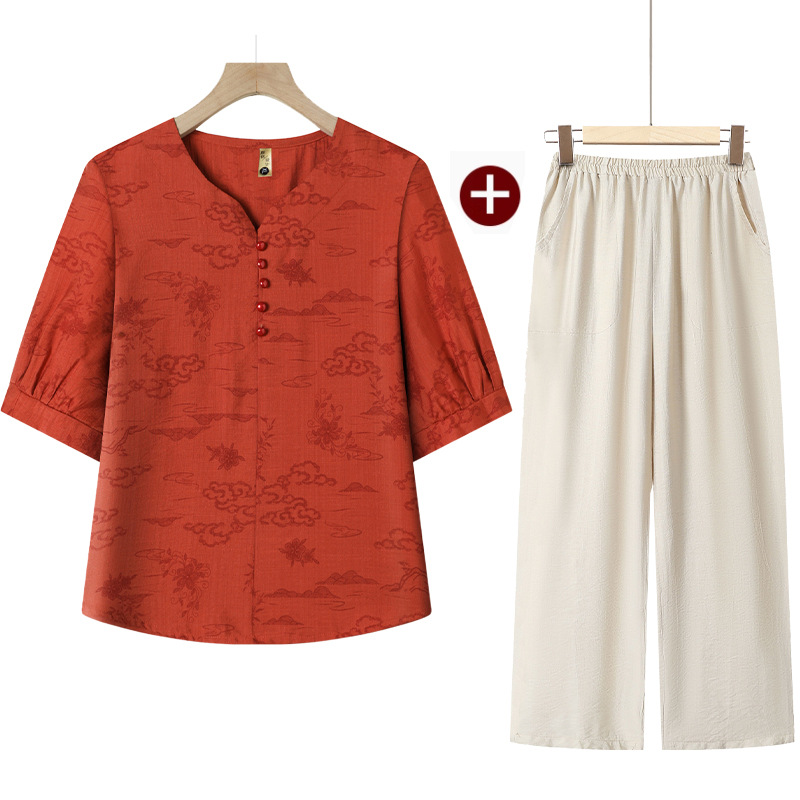 民族風媽媽套裝【上衣+褲子】完美搭配,夏季透氣不悶汗,洋氣百搭,親膚絲滑面料!(40-80KG可穿)